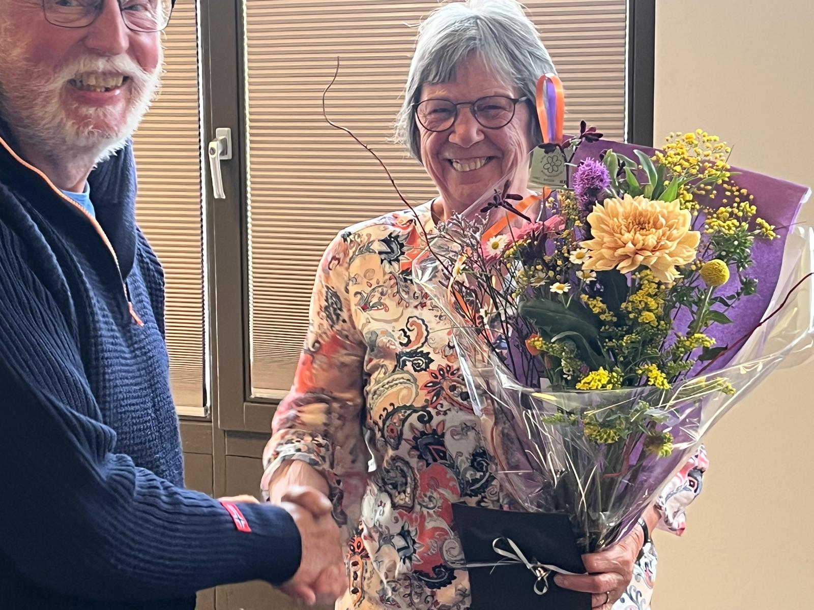 Mevr. nijssen kreeg een bloemetje van de secretaresse KBO